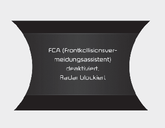 Wenn die Sensorabdeckung durch Schnee, Schmutz oder Verunreinigungen zugesetzt ist, kann der Frontalkollisions-Vermeidungsassistent vorübergehend nicht verfügbar sein. In diesem Fall wird der Fahrer durch eine entsprechende Warnmeldung informiert.