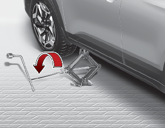 Introduzca la palanca de maniobra del gato en el gato y gírela en sentido horario, elevando el vehículo hasta que las ruedas se separen del suelo. Esta medida es de 30 mm (1,2 pulgadas) aproximadamente. Antes de extraer las tuercas de la rueda, asegúrese de que el vehículo está estable y no hay manera de que se mueva o deslice.