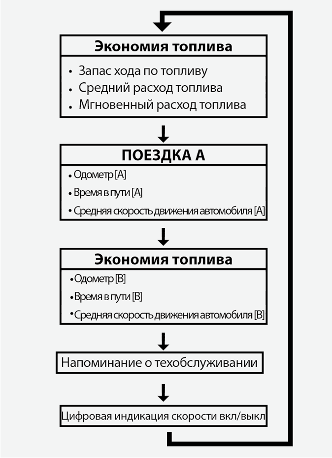 Информация о поездке (маршрутный компьютер) (для приборной панели типа А)