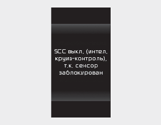 В этом случае на приборной панели появится предупреждение «Smart Cruise Control disabled. Radar blocked obscured» (Интеллектуальный круиз-контроль отключен. Радар заблокирован) или «SCC (Smart Cruise Control) disabled. Radar blocked» (SCC (Интеллектуальный круиз-контроль отключен. Радар заблокирован)) и загорятся индикаторы.