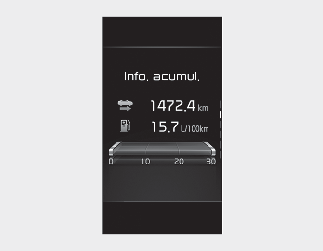 O modo de computador de bordo apresenta informações relacionadas com os parâmetros de condução do veículo, incluindo, entre outros, informação acumulada e informações de condução.
