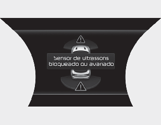 A mensagem de aviso "Parking sensor error or blockage" (Erro ou bloqueio do sensor de estacionamento é apresentada no painel de instrumentos).
