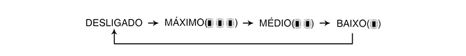 Sempre que premir o botão, o fluxo de ar irá alterar-se da seguinte forma: