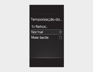 Quando o veículo é entregue inicialmente, Warning Timing (Temporização do aviso) está definido como Normal. Se alterar a temporização do aviso, o tempo de aviso de outras funções de assistência ao condutor poderá mudar.