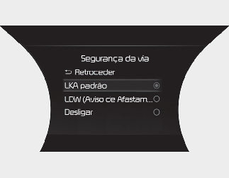 Se a opção "Warning Only" (Apenas aviso) (ecrã LCD) ou "Warning Only" (Apenas aviso) (ecrã do sistema de infotainment) for selecionada, a função avisa o condutor com um aviso sonoro quando é detetada uma saída da faixa de rodagem. O condutor tem de dirigir o veículo.