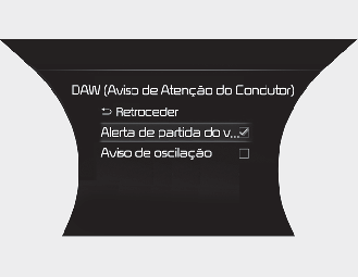 Se a opção "Leading Vehicle Departure Alert" (Alerta de partida do veículo à frente) for selecionada, a função informa o condutor quando o veículo da frente parte depois de uma paragem.