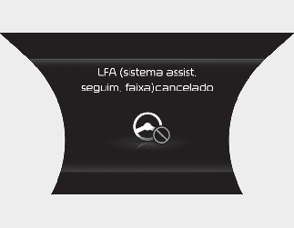 Se o condutor ainda não tiver colocado as mãos no volante após o aviso de mãos fora do volante, a mensagem de aviso "Lane Following Assist (LFA) canceled" (LFA (sistema de assist. seguim. na faixa) cancelado) é apresentada e a Assistência a seguimento na via é automaticamente cancelada.