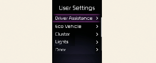 * If you press OK button for more than 1 second when the Driving Assist mode is being displayed, it leads to Driver assistance settings menu on the infotainment system screen.