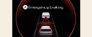 Emergency braking will alert the driver with the warning message, an audible warning and steering wheel vibration. The brake assist will be activated and it helps avoiding collision of a vehicle, pedestrian and cyclist.