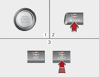 Apăsați butonul de dejivrare a parbrizului timp de 3 secunde când butonul ENGINE START/STOP este în poziția ON.
