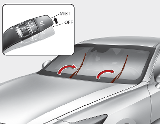 După oprirea motorului, mutați comutatorul ștergătoarelor în poziția de ștergere singulară (MIST) în interval de 20 secunde și mențineți comutatorul mai mult de 2 secunde, până când lamela ajunge în poziția maximă de sus.