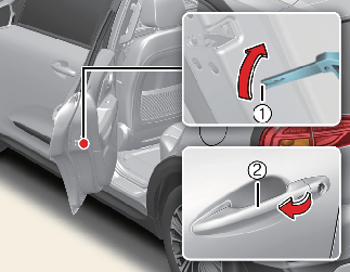 כדי לפתוח את הדלתות האחוריות, משכו את ידית הדלת החיצונית (2).