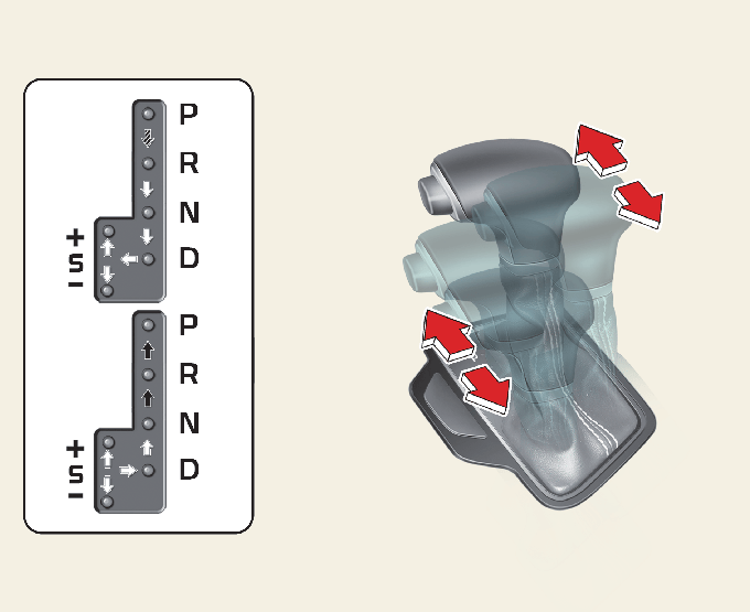 דחוף את ידית ההילוכים לאחור להילוך D (נסיעה לפנים) כדי לחזור למצב תיבת הילוכים אוטומטית.