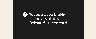 A: Recuperative braking not available (הבלימה הממחזרת אנרגיה לא זמינה). Battery fully charged (המצבר טעון במלואו).