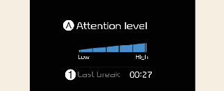 ההודעה "Consider taking a break" (חשוב על יציאה להפסקה) תופיע בצג LCD ואזהרה תושמע כדי להציע לנהג להפסיק את הנהיגה, כאשר רמת תשומת הלב שלו נמוכה מ-1.