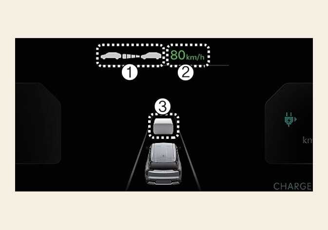 המרחק של הרכב שמלפנים בלוח המחוונים מוצג בהתאם למרחק בפועל בין הרכב שלך לרכב שמלפנים.