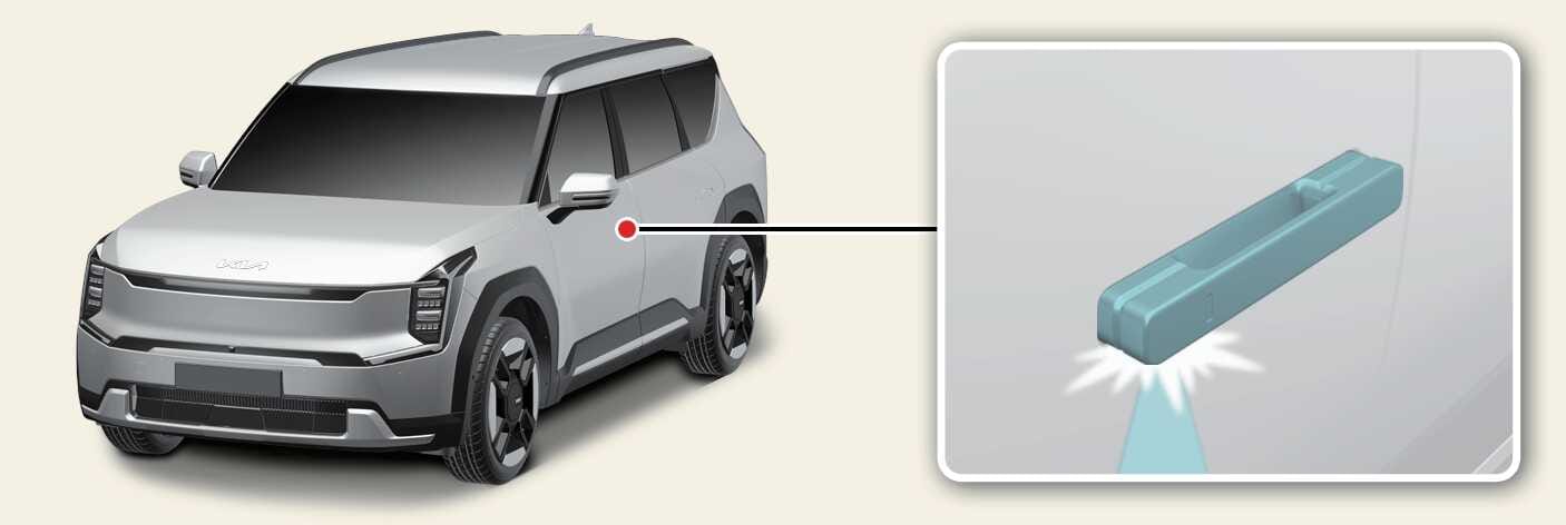 המפתח החכם נמצא במרחק של כמטר אחד מידית הדלת החיצונית (אם פונקציית התקרבות הנהג פעילה)