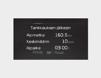 Voit nollata tiedot tankkaamisen jälkeen painamalla OK-painiketta yli sekunnin ajan sen jälkeen, kun tiedot tulevat näkyviin.