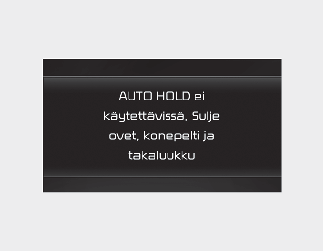 Kun painat [AUTO HOLD]-kytkintä, niin jos kuljettajan ovi, konepelti ja peräluukku eivät ole suljettuja, kuuluu varoitusääni ja mittariston LCD-näytöllä näkyy viesti.