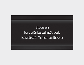 tai "Forward Safety Function disabled. Radar blocked" (Etuturvallisuustoiminto katkaistu. Tutka estetty) -varoitusviesti sekä