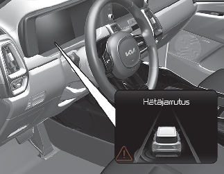 Kun ajoneuvo pysäytetään hätäjarrutuksella, mittaristoon tulee varoitusviesti ”Drive carefully" (Aja varovasti) ilmestyy kojelautaan.