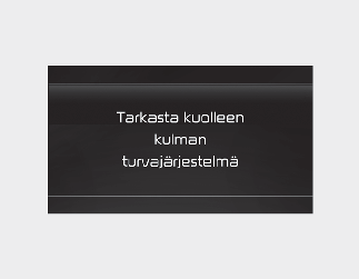 Kun sokean pisteen törmäyksen välttämisavustaja ei toimi kunnolla, varoitusviesti "Check Blind-Spot Safety system" (Tarkista sokean pisteen turvajärjestelmä) ilmestyy kojelautaan ja toiminto poistuu automaattisesti käytöstä tai sen toimintaa rajoitetaan. Anna valtuutetun Kia-jälleenmyyjän tarkastaa toiminto.