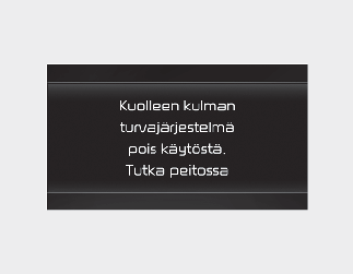 Jos tämä tapahtuu, varoitusviesti "Blind-Spot Safety Function disabled. Radar blocked" (Sokean pisteen turvajärjestelmä on katkaistu. Tutka estetty) ilmestyy kojelautaan.