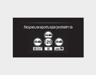 Älykäs nopeusrajoitusavustin varoittaa ja ohjaa autoa seuraavilla tavoilla: "Displaying speed limit" (Näytä nopeusrajoitus), "Warning overspeed" (Varoita ylinopeudesta) ja "Changing set speed" (Muuta nopeusasetusta).