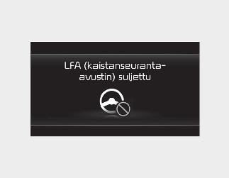 Jos kuljettaja ei edelleenkään aseta käsiään ohjauspyörälle kädet poissa -varoituksen jälkeen, näkyviin tulee varoitusviesti "Kaistan seuraamisavustaja (LFA) peruutettu" ja Kaistan seuraamisavustajajärjestelmän toiminta peruutetaan automaattisesti.
