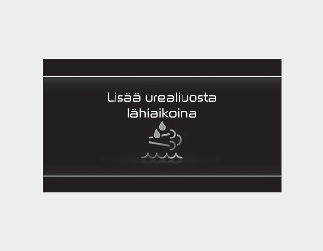 Muuten autoa ei voi käynnistää uudelleen, kun moottori on sammutettu käyttämällä MOOTTORIN KÄYNNISTYS/PYSÄYTYS -painiketta. Ajotyylin, ympäristöolosuhteiden ja tien profiilin perusteella vähennetty jäljellä oleva ajomatka voi poiketa todellisesta matkaetäisyydestä. Kun näyttöön tulee viesti "Low Urea” (Ureaa vähän) tai "Refill Urea” (Lisää ureaa), on lisättävä sopiva määrä urealiuosta. Kun viesti "Refill Urea in 000 km or vehicle will not start" (Lisää ureaa 000 km jälkeen tai auto ei käynnisty) on näytössä, lisää tarpeellinen määrä urealiuosta.
