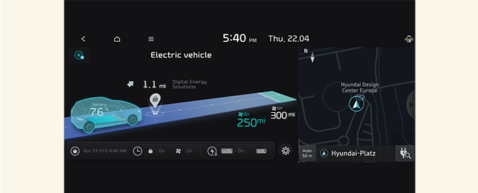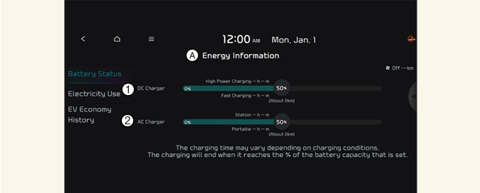 Select EV and see the vehicle image from the infotainment system screen. You can check battery information and energy consumption.