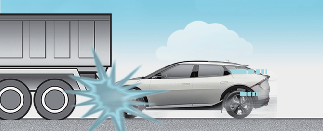 Just before impact, drivers often brake heavily. Such heavy braking lowers the front portion of the vehicle causing it to "ride" under a vehicle with a higher ground clearance. Air bags may not inflate in this "under-ride" situation because deceleration forces that are detected by sensors may be significantly reduced by such "under-ride" collisions.