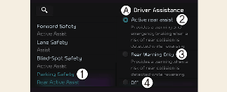 ) button for more than 2 seconds to turn Active rear assist or Rear Warning Only on or off.