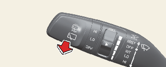 In the O (Off) position, pull the lever gently toward you to spray washer fluid on the windscreen and to run the wipers 1-3 cycles.
