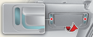 Close the vanity mirror cover securely and return the sunvisor to its original position after use. If the vanity mirror is not closed securely, the lamp will stay on and could result in battery discharge and possible sunvisor damage.