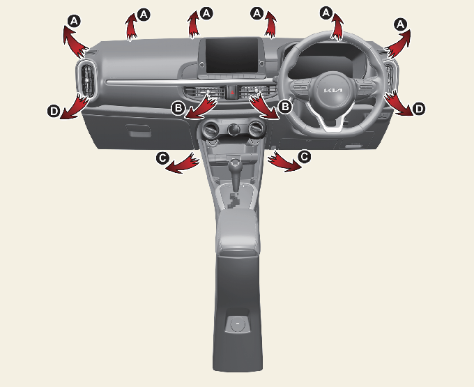 Air flow is directed toward the upper body and face. Additionally, each outlet can be controlled to direct the air discharged from the outlet.