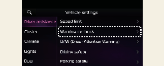If you change the Warning Methods, it can be applied to each function of the driver assistance system. Please check and change it in each function.