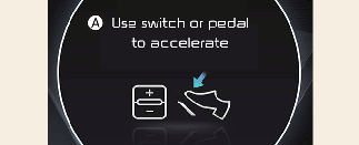on ligikaudu 30 sekundit, esitatakse näidikuplokil teade Use switch or pedal to accelerate (Kasutage kiirendamiseks lülitit või pedaali). Vajutage sõitmise alustamiseks gaasipedaali või + lülitit, – lülitit või lülitit (