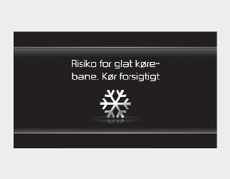 Hvis advarselslampen for glat føre lyser under kørslen, skal De køre mere opmærksomt og sikkert, og undlade at køre for stærkt, foretage hurtige accelerationer, pludselige opbremsninger eller skarpe sving osv.