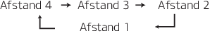Hver gang der trykkes på knappen Køretøjsafstand, ændres køretøjsafstanden som følger: