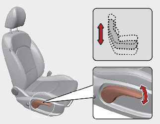 Aby zmienić wysokość poduszki siedzenia, należy przesunąć dźwignię, która znajduje się poza fotelem, do góry lub do dołu.