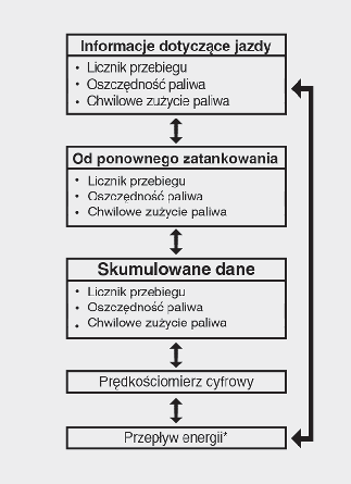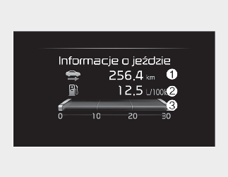 W przypadku otwarcia drzwi kierowcy po wyłączeniu silnika lub po upływie 3 minut od jego ponownego uruchomienia, informacje o jeździe zostaną wyzerowane.