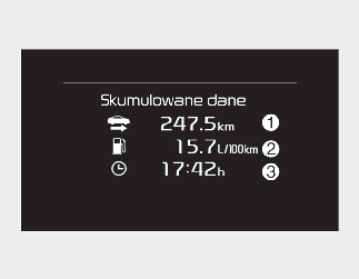 W przypadku otwarcia drzwi kierowcy po wyłączeniu silnika lub po upływie 3 minut od jego ponownego uruchomienia, informacje o jeździe zostaną wyzerowane.