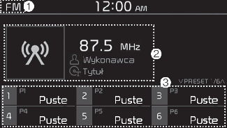 Scan (Skanowanie): system wyszukuje stacje radiowe o silnym sygnale i odtwarza każdą z nich przez pięć sekund.