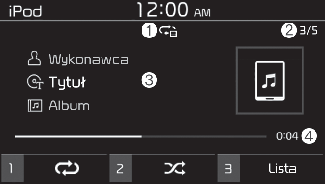 Information (Informacje): wyświetlanie informacji o aktualnie odtwarzanym utworze.