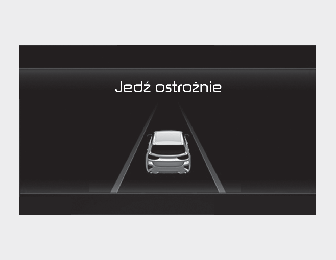 Po zatrzymaniu pojazdu w wyniku hamowania awaryjnego w zestawie wskaźników zostanie wyświetlony komunikat ostrzegawczy „Drive carefully” (Jedź ostrożnie).