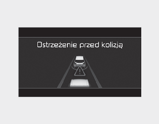 Aby ostrzec kierowcę o kolizji, w zestawie wskaźników pojawia się komunikat ostrzegawczy „Collision warning” (Ostrzeżenie o kolizji), rozlega się ostrzegawczy sygnał dźwiękowy i uruchomiona zostaje wibracja kierownicy.
