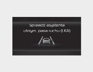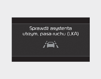 Gdy asystent utrzymywania pasa ruchu działa nieprawidłowo, pojawia się komunikat ostrzegawczy „Check Lane Keeping Assist (LKA)