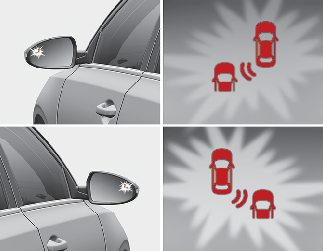 Aby ostrzec kierowcę o kolizji, kontrolka ostrzegawcza na zewnętrznym lusterku wstecznym będzie migać.