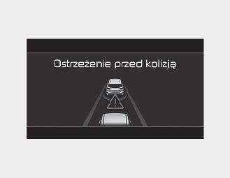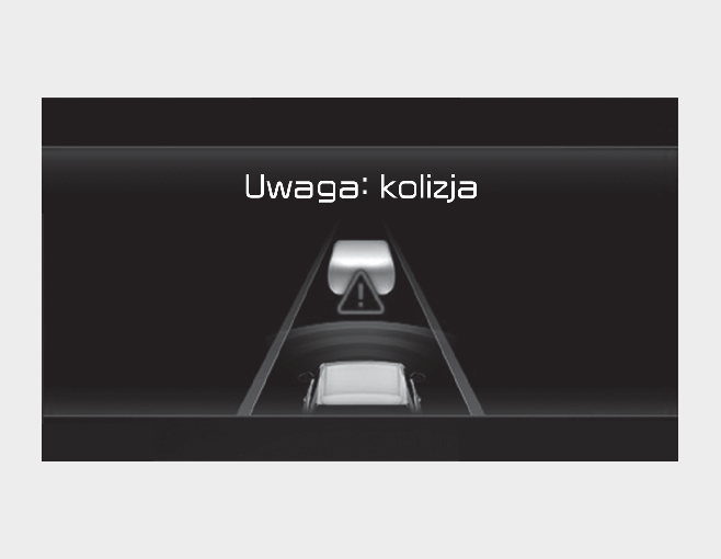 Jeśli podczas działania inteligentnego tempomatu ryzyko kolizji z pojazdem poprzedzającym jest wysokie, w zestawie wskaźników pojawia się komunikat ostrzegawczy „Collision Warning” (Ostrzeżenie o kolizji) i rozlega się sygnał dźwiękowy, aby ostrzec kierowcę. Podczas jazdy należy stale obserwować drogę i w razie potrzeby nacisnąć pedał hamulca, aby zmniejszyć prędkość jazdy w celu zachowania bezpiecznej odległości.
